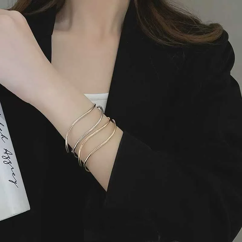 Minimalist Stainless Steel Geometric Wavy Line Cross Winding Bracelet Open Design Zircon Trendy Buddhist Inspired Waterproof